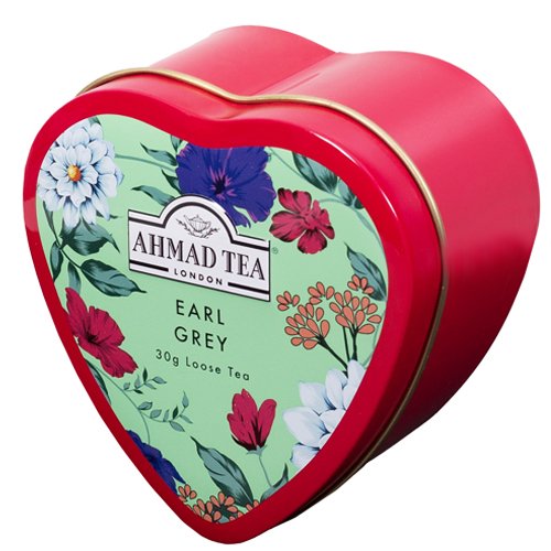 -        Dainty heart shaped caddy containing 30g of loose tea in a foil pouch.
