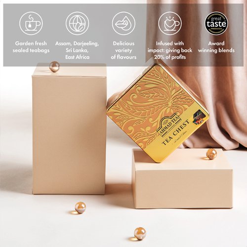 You’ll find 10 teabags of each blend inside the charming caddy. We individually foil-wrap each one to ensure every cup is fresh and flavourful. Make the Tea Chest part of your tea ceremony, or give it to the tea lover in your life so they can explore its pleasures and treasures. With its ornate design, the caddy will stand the test of time, meaning you can continue to refill with your favourite Ahmad Teas for years to come.
